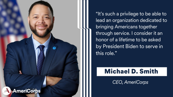 | Michael D. Smith Takes Helm as New CEO of AmeriCorps Former Obama Special Assistant Leads Federal Agency for National Service and Volunteerism under Biden-Harris Administration |